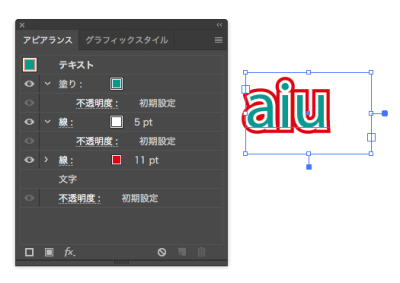 テキストオブジェクトは、アピアランスパネルで線と塗りの位置を入れ替えると、線を太くしても塗りが痩せない。